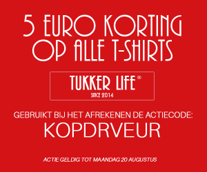 Wil je het shirt direct bestellen dan heeft Tukker Life een toffe actie. Tot en met aanstaande zondag kost het shirt geen €24,50, maar slechts €19,50. Gebruik hiervoor de actiecode: KOPDRVEUR Dezelfde actiecode is ook te gebruiken voor alle andere t-shirts uit de Tukker Life collectie.
